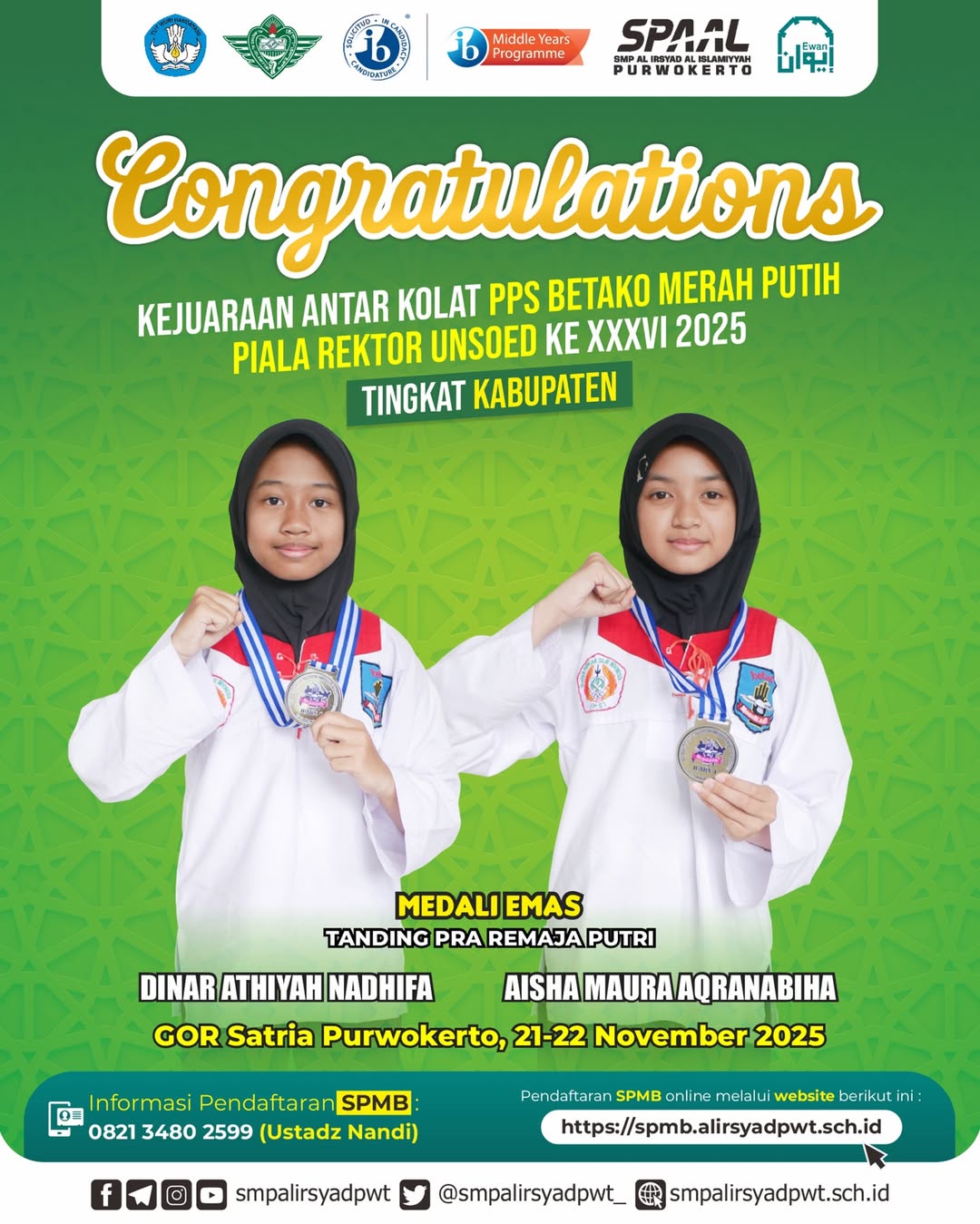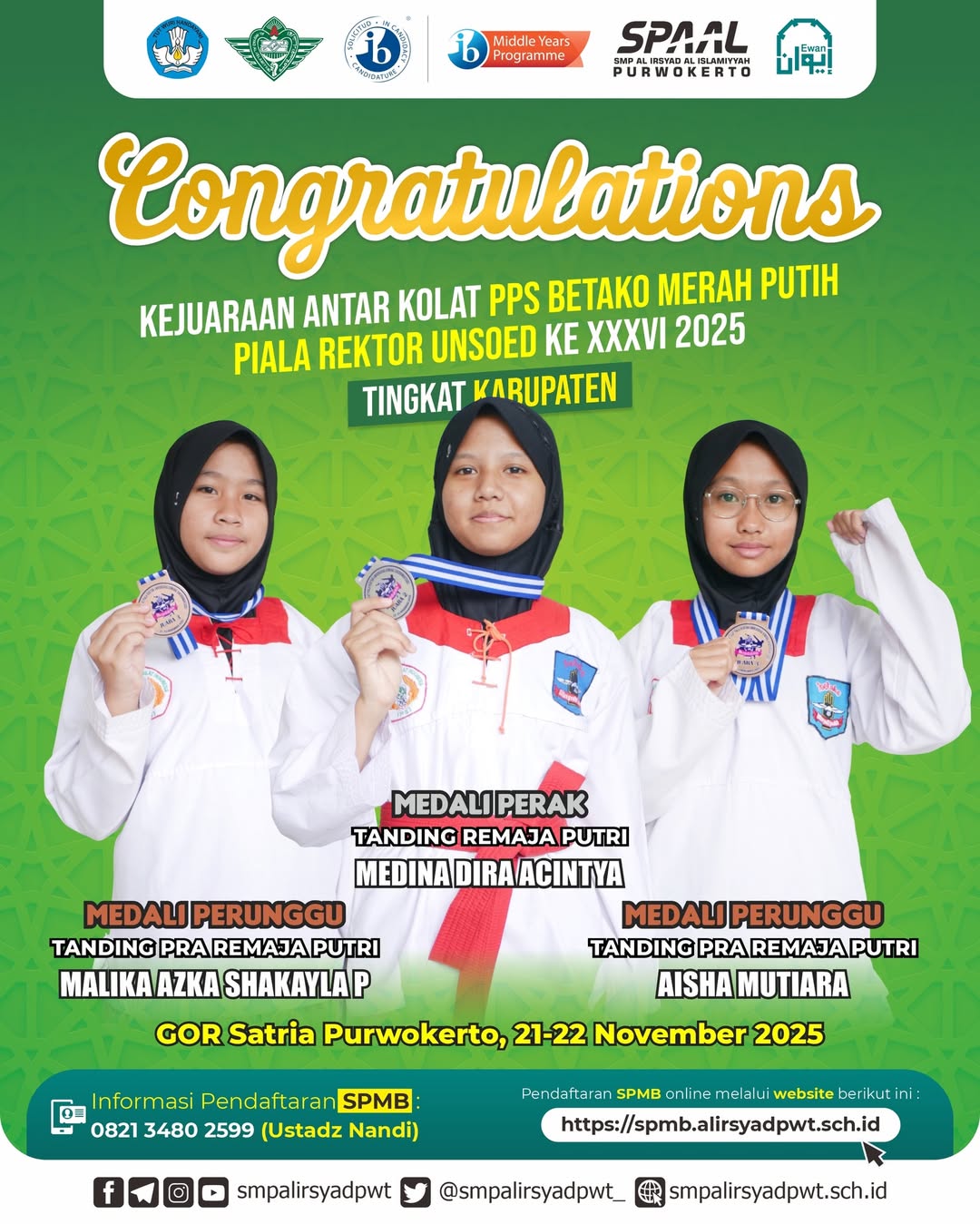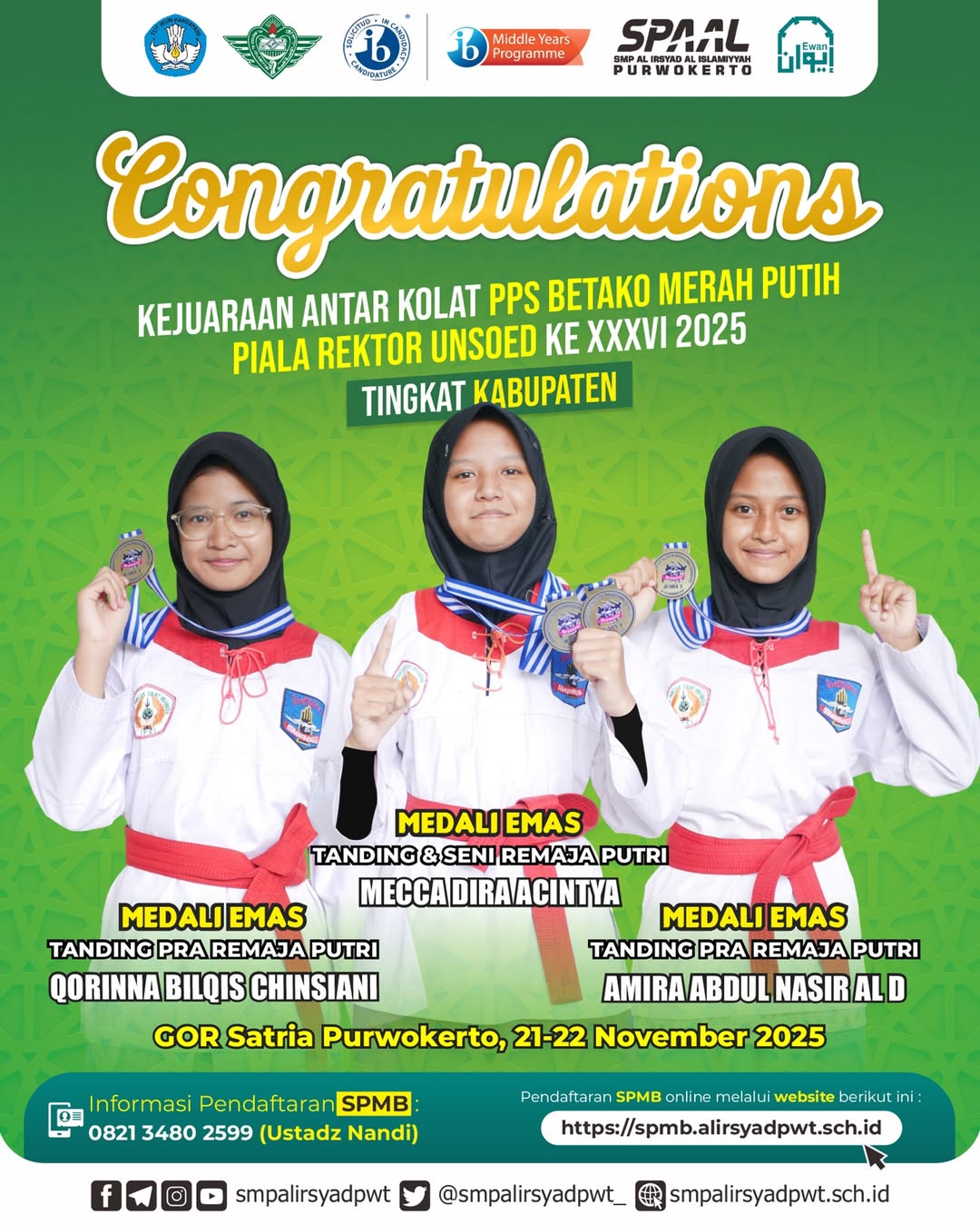 Purwokerto β Siswa-siswi SMP Al Irsyad Purwokerto kembali menorehkan prestasi membanggakan dalam ajang Kejuaraan Antar Kolat PPS Betako Merah Putih β Piala Rektor Unsoed ke-XXXVI Tahun 2025 Tingkat Kabupaten. Kejuaraan ini diselenggarakan di GOR Satria Purwokerto pada 21β22 November 2025.